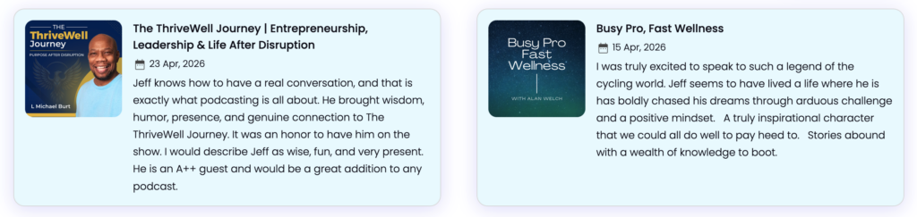 Jeffrey Seckendorf is a keynote speaker who presents programs on high performance leadership, resilience, mastery, creativity, and the long game. As a world record holding endurance cyclist and award-winning cinematographer, Jeff brings a unique perspective on how individuals and organizations achieve excellence through process, teamwork, and long-term thinking. His keynote presentations combine storytelling, humor, and practical frameworks that audiences can apply immediately to leadership, business, education, healthcare, and personal performance.